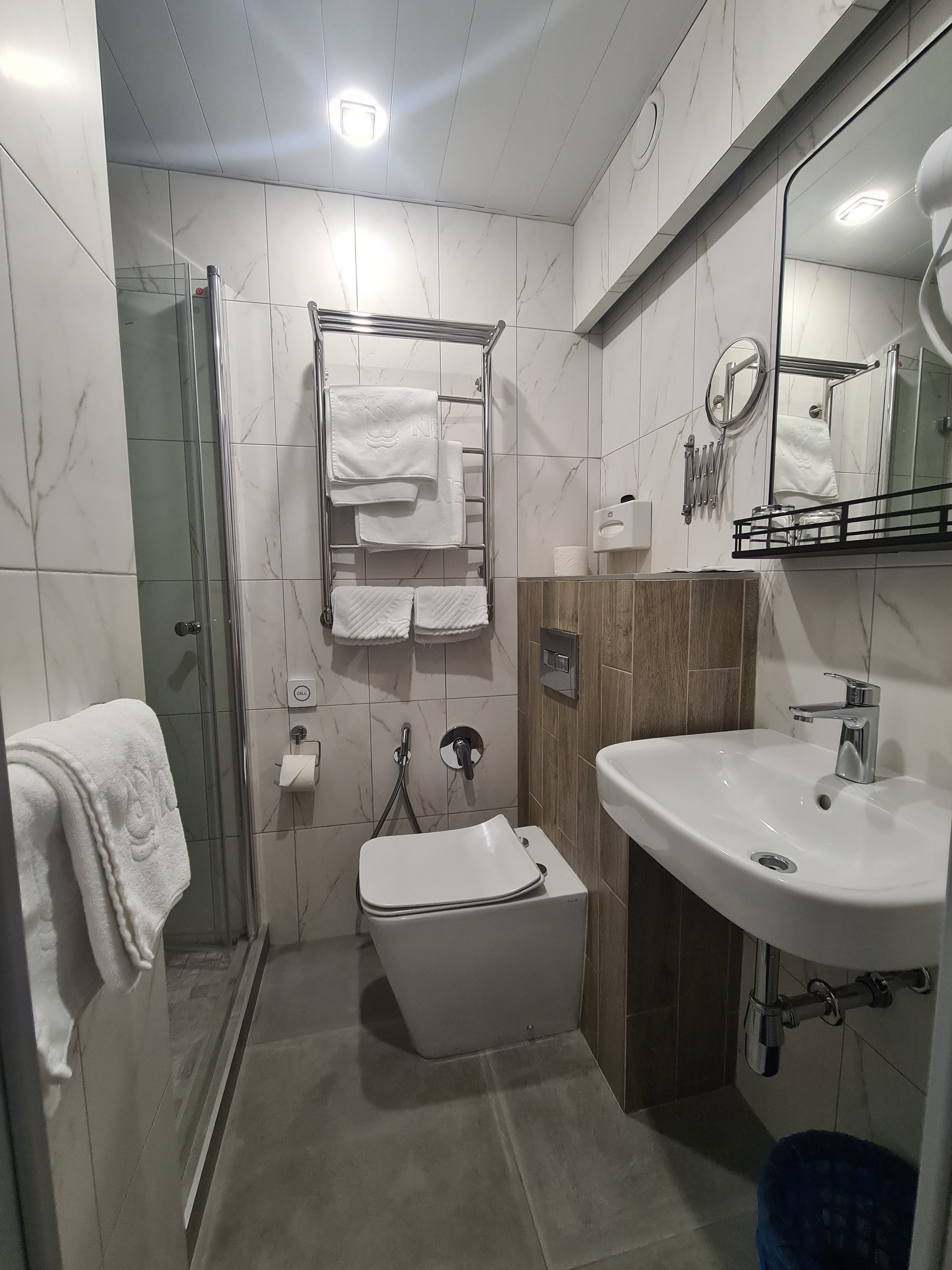 ванная комната с душевой кабиной (душ - «тропический ливень»)